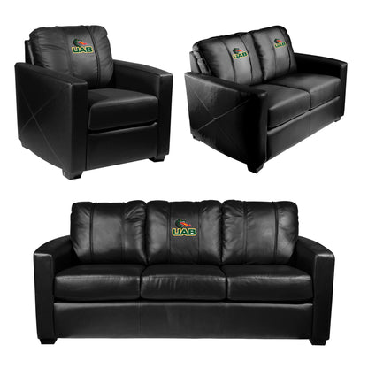 The Silver Series Club Chair is a perfect choice for looks, comfort and versatility. Designed to be used in any setting the design of the Silver Series is timeless. It features high quality synthetic leather with a hardwood frame, no-sag spring suspension and high resiliency foam. Also available in a loveseat and matching sofa. The patented XZipit system provides endless logo options on the front of the chair and allows you to showcase your favorite team or interest. Click To View All University of Alabama at Birmingham Logo Furniture