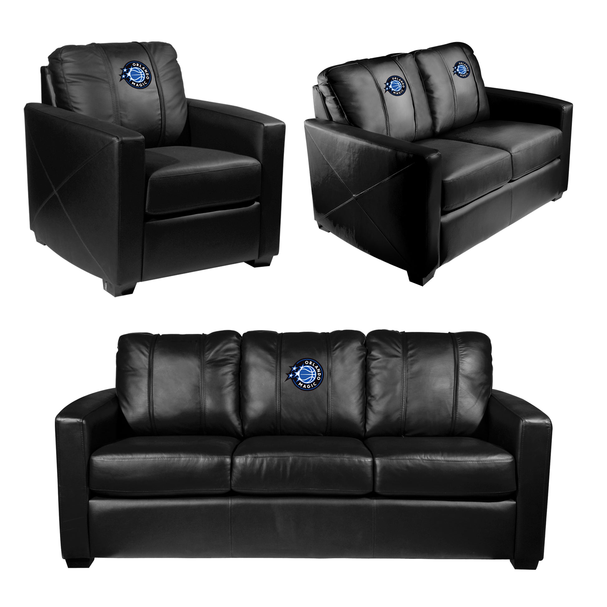 Upgrade your space with a combination of our Club Chair, Loveseat and Sofa. All logos are interchangeable between silver series pieces.