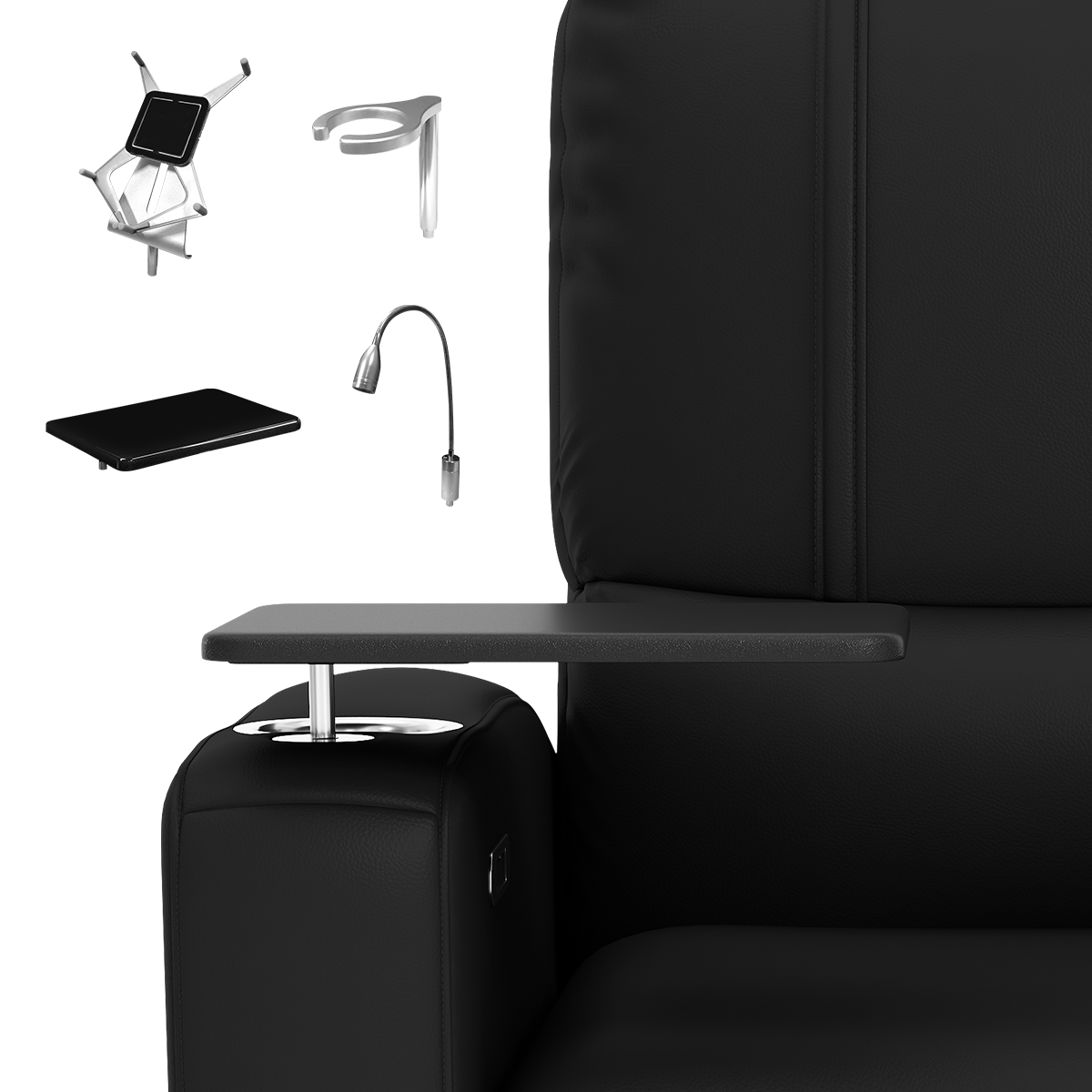 The Stealth Recliner Power Plus has a power recline which is perfect for your living room, man cave, home theater, or anywhere you want to recline and relax in total comfort. Combining sleek lines, maximum comfort, a compact footprint and a power recline, the Stealth is perfect for any budget. Featuring a synthetic leather, cup holders in each arm, USB ports and optional add-ons like a swing table, tablet holder, wine glass holder and a flex light, the Stealth Power Plus is perfect for watching your favorite live sporting event, movie or television series. The patented XZipit system provides endless logo options on the front of the chair and allows you to showcase your favorite team or interest.