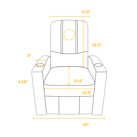 Perfect for your living room, man cave, home theater, or anywhere you want to recline and relax in total comfort. Combines sleek lines with maximum comfort in a compact footprint. The stealth features synthetic leather and a manual recline mechanism. Cup holders in each arm add to the utility of the chair. The patented XZipit system provides endless logo options on the front of the chair and allows you to showcase your favorite team or interest.